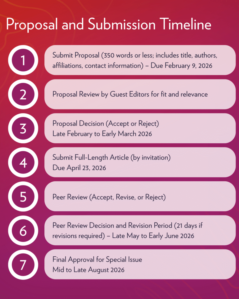 Step 3: Notification of Proposal Decision (Accept/Reject): The anticipated date of notification of whether your proposal was accepted or rejected is late February/early March 2026. Accepted proposals will be invited to submit a full-length article for peer review.